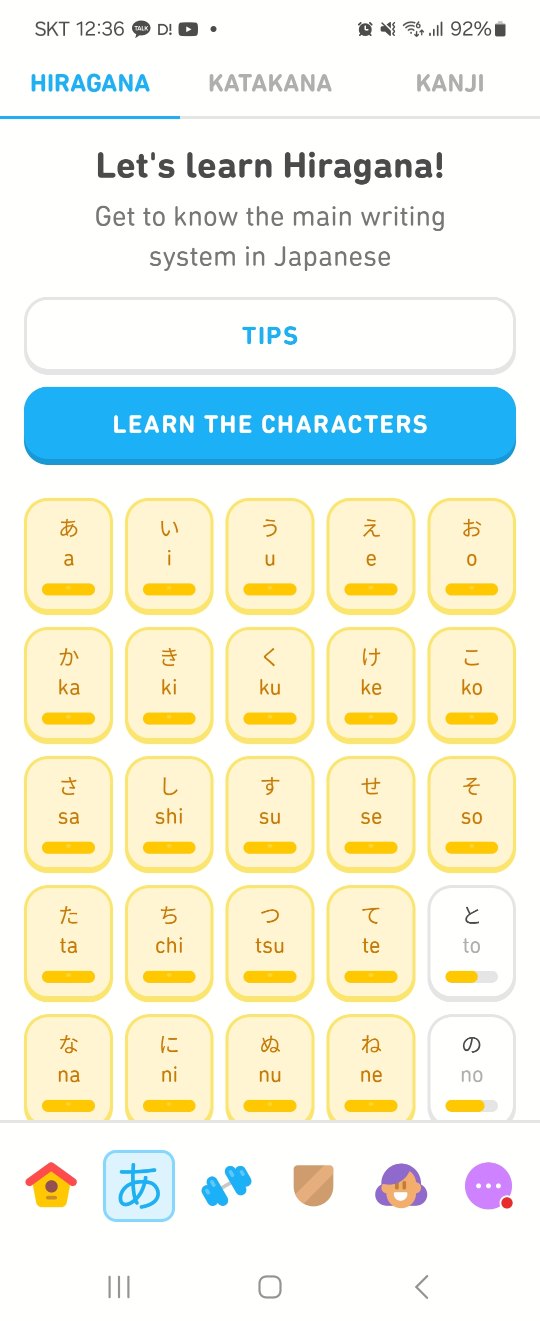 히라가나-가타카나 공부를 병행하면서 듀오링고로 문장/단어를 학습 중이다!
