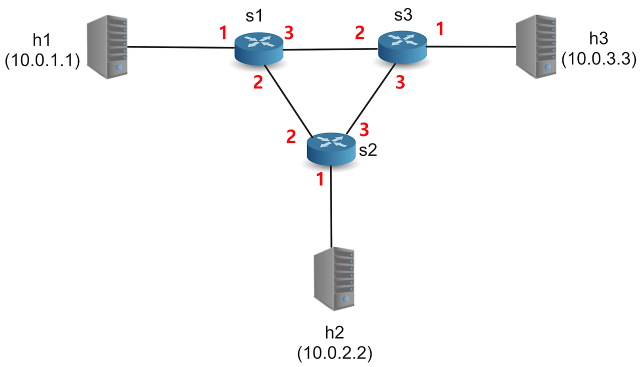이 경우 h1에서 send.py를 몇 번 실행해도 h3에는 패킷이 도달하지 않는 것을 확인할 수 있습니다. 참고로 host IP가 아닌, 10.0.0.1이라는 게이트웨이 ip로 packet을 전송하는 구조입니다.