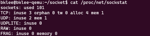 namespace에서 해당 protocol에 대해 얼마나 많은 socket이 사용중인지 기록하는 것으로 보이는데요, val은 1로 1만큼 증가하게 됩니다. inuse 값은 다음 proc fs에서 찾아볼 수 있습니다. (참고)