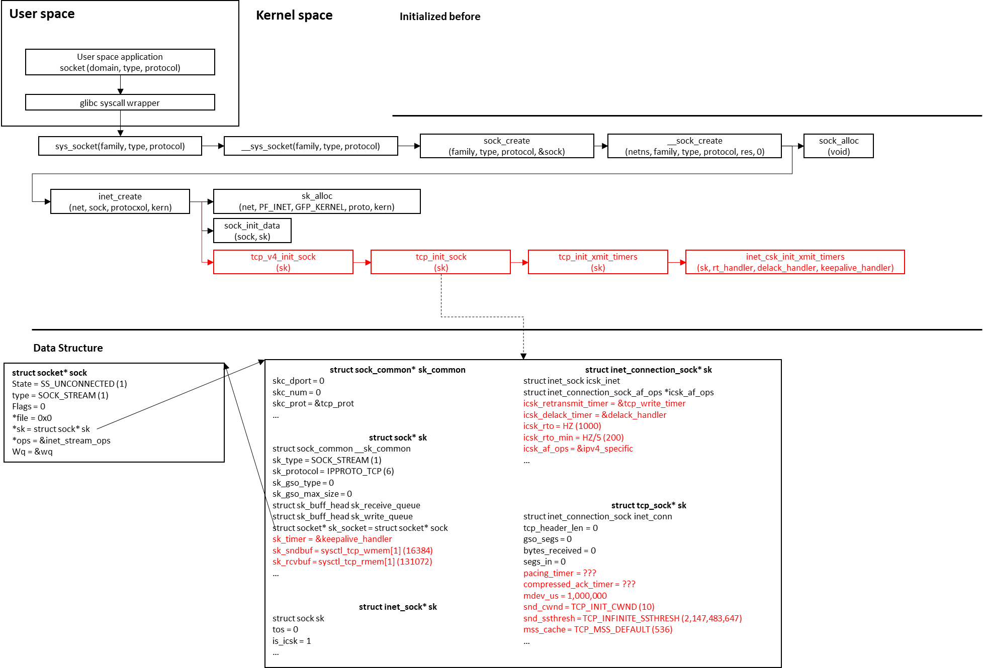 inet_create에서 sk->sk_prot->init(sk);가 연결된 함수포인터는 tcp_v4_init_sock이었습니다. 이 함수는 살펴보면 별 일은 안합니다.